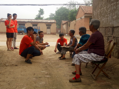 在一路口,实践团成员发现三位老人正在乘凉,成员们纷纷走上前去与老人聊天。三位老人已至耄耋之年,但是身体十分硬朗,精神状态很不错。老人给实践团成员们讲述着自己以前所经历的故事,将实践团成员同当年的知青“下乡”比较,讲述着一段实践团成员未曾经历的历史,成员们认真的倾听着,深深地为当年老一辈们艰苦朴素的精神所感动。最后,实践团成员同几位老人依依不舍的告别,返回了实践团居住地。
