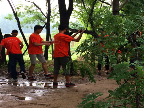 下午,实践团五名成员徒步来到村外的环形公路上,经实地观测,成员们发现直接入村的公路只有一条,并且由于道路两侧树木生长茂盛,从外围观察公路无法直观地获得道路两侧分岔口的交通状况,具有一定的交通隐患。同时部分树枝外伸到公路上侧,导致公路上侧形成自然限高,虽不影响村民的正常出行,但由于村内正进行农村建设,这种情况可能影响到大型货车以及客车的通行。发现情况后,实践团成员李晶磊立即回村与村委联系协商,最终决定将外伸树枝进行切割整理,经实践团成员请求,村委决定将这项工作交付给成员们,并给成员们提供了电锯等工具。成员们首先对树的分布和树枝的生长位置进行观察,确定需要切割的树枝及切割点。由于部分树枝较为粗壮,强行切割不能最大限度地降低对树木的损害,成员们决定以分部切割,定点取力的方式,对影响通行的树枝进行清理。切割过程中,成员们遇到不少困难,由于刚下过雨,道路较为泥泞,给进行切割的成员造成不少困扰,同时电锯的剧烈震动让成员们有些招架不住,不过在五名成员的齐心协力下,影响通行的树枝最终被成功切割,并最大限度的降低了对树木的损害。