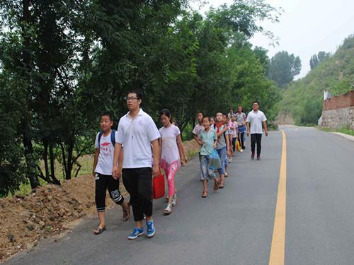 放学后,为安全起见,各班级老师组织员工们在公司门口按家庭住址有序排队,由各队老师负责护送回家。一路上,队员们带领孩子们唱起了山歌,第一天的支教工作结束在这嘹亮的歌声中。“情系阜平”支教团队队员对孩子们积极热情,短短的一天与孩子们结下了深厚的感情,为以后的工作进展打下了坚实的基础。