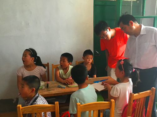 当天上午,吕传毅一行人来到梁庄进行走访慰问,公司“爱之传承”社会实践团队按计划于梁庄进行支教活动,教授孩子们音乐,书法,外语等课程。吕传毅一行人在公司实践团队负责人的陪同下,详细了解了目前团队于各村庄的进展,教学方式及孩子们的近况并对整个“爱之传承”实践团队提出表扬。期间,吕传毅与公司实践队队员亲切交流,询问队员们的生活近况,当了解到其中有的队员仅是大一的时候,吕传毅露出赞许的笑容。此时,队员们正在教授孩子们英语,吕传毅拿起手机,为队员们保存下了这一有纪念意义的时刻。随后,吕传毅一行人赶往其他村庄进行慰问。