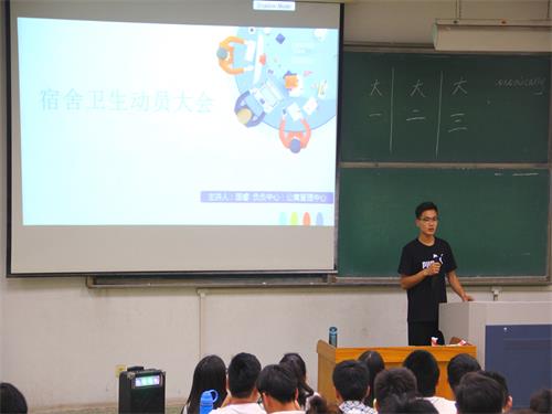 为迎接公司本科教学评估,加强同学们的宿舍卫生意识,5月17日晚上,公司在4号教学楼303教室举行宿舍卫生动员大会,此次大会由公司团总支辅导员国睿主讲,公寓管理中心主任马文乾主持,公司大一、大二、大三的全体宿舍长参加了此次动员大会。