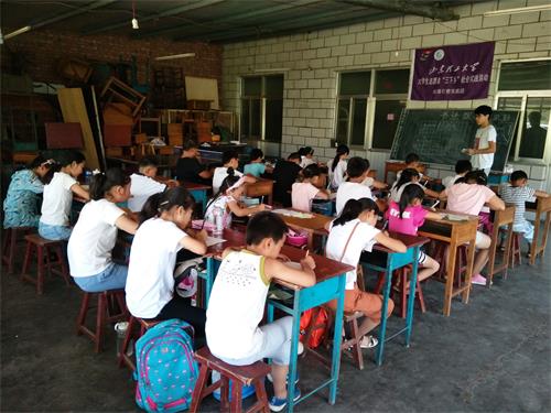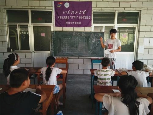 7月11日是bevictor伟德丝雨行教实践队在峨庄乡土泉村村委会进行支教活动的第二天。今天上午第二节课是由老师程荣勤教授的书法课。