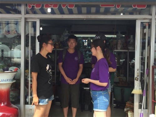 队员们来到大观园后,首先向一位陶瓷店的老大爷了解了大观园的基本情况,随后又经老大爷指路,寻找到中国古窑村。古窑村保存有大量数十年前的建筑,到处充满了上世纪五六十年代的气息。随后队员们来到村里类似于当时供销社或者是集市的地方进行实地调研并向其中几家商店的老板了解情况,一位老板告诉队员现在市面上的瓷器基本上都是新磁窑生产,很少能见到老磁窑的瓷器。