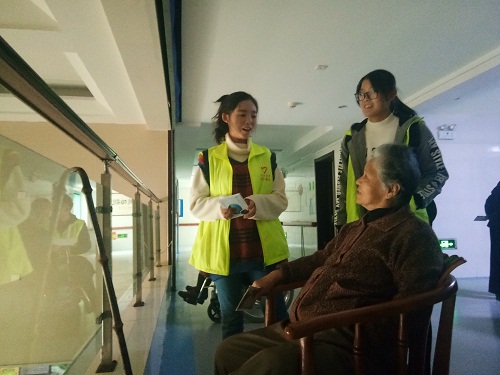 到达敬老院后,志愿者们分别行动,有的帮助老人整理内务,打扫卫生,使老人有一个舒适的生活环境;有的到各个房间或者老人活动的地方,陪老人们说说话,聊聊天,听老人讲讲他们过去的故事,讨论一下现在生活的改变;有的给老人们带去了才艺表演,说学逗唱,让他们开怀一笑。这一次的活动不仅给老人带去了欢乐,也让参与活动的同学们受到了教育。看到老人们灿烂的笑容,听到老人们爽朗的笑声,志愿者们纷纷表示充分体会到了此次志愿活动的意义所在。一个半小时的志愿服务时间很快过去,大家合影留念。欢乐的时光总是短暂的,最后,志愿者们和老人们也不得不在不舍中告别。