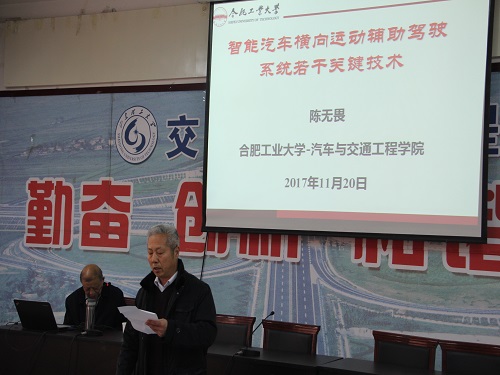 11月20日下午,公司特邀请合肥工业大学机械与汽车公司博士生导师陈无畏教授于12号教学楼201教室做了题为“智能汽车横向运动辅助驾驶系统若干关键技术”的学术报告。此场学术报告会由公司副经理郭宗和主持,公司全体老师及来自车辆工程、交通工程、交通运输三个专业的部分员工代表参加。