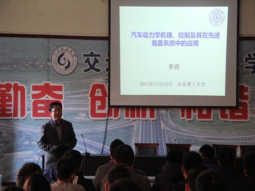 11月22日下午,我院于12号教学楼201教室举办以“汽车动力学与控制”为题目的学术报告会,担任此次报告会主讲人的是清华大学汽车工程系研究员、汽车工程学科主任李亮。此次报告会由公司副院长郭宗和主持,公司部分教师及2016级研究生代表参加。