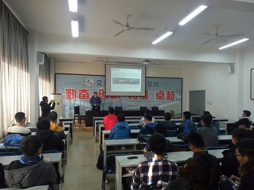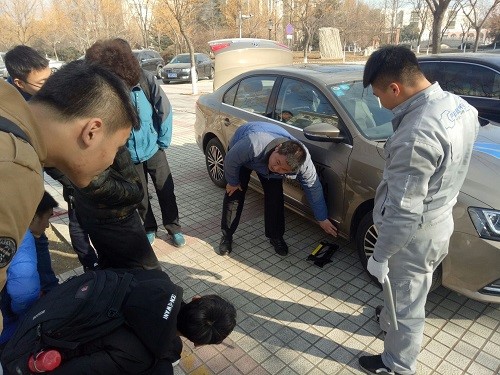 会议伊始,张田首先给大家讲解了淄博久期一汽大众企业品牌文化,随后,他对汽车保养、维修以及一些汽车驾驶过程中需要注意的安全问题进行了详细的说明。同学们认真听讲、积极提问,并针对一些有探讨性的问题展开了讨论。会后,张田坦言,此次与同学们交流让自己感受到了年轻的气息,并且表示同学们提出的许多想法和观点都很有心意,对以后的工作研究给予了新的启示。课上活动结束后,他带领同学们来到十二号教学楼前,现场为大家讲解了汽车紧急状况如何逃生、如何更换备胎等问题,以及汽车千斤顶等一些工具的使用原理、使用方法和注意事项。最后,大家合影留念。会后,一位与会同学说到,从此次活动中,自己学到了一些汽车方面的知识,对汽车有了更近一步的了解,开阔了自己的视野。