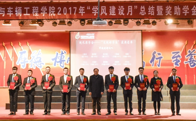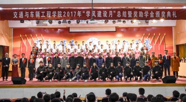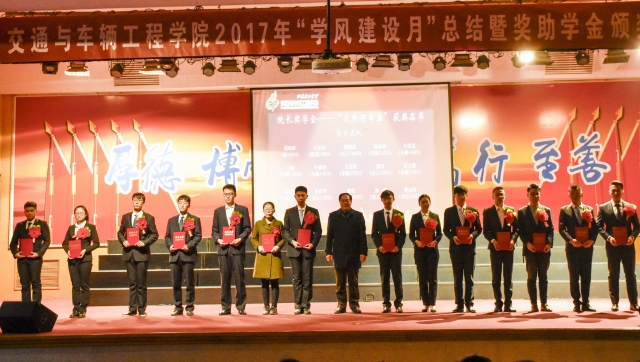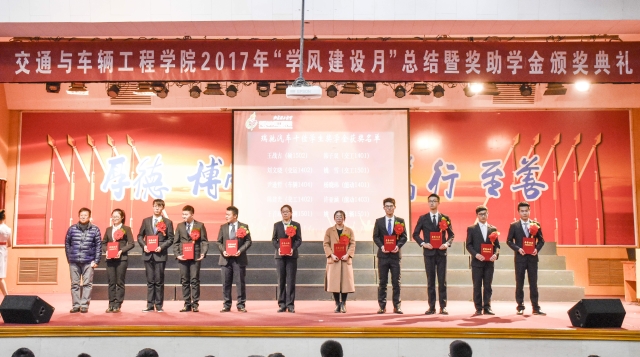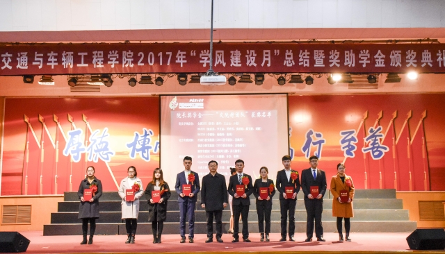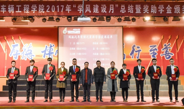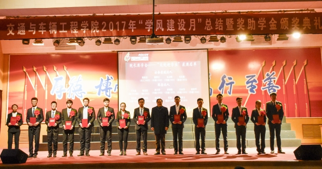 12月28日下午,bevictor伟德“学风建设月”总结大会暨2017年奖助学金颁奖典礼在三号教学楼报告厅举行。公司党委副书记、董事长张铁柱,聊城中通客车控股股份有限公司人力资源部部长时维报,潍坊瑞驰汽车系统有限公司人力资源部部长韩璐,校团委书记麻国升,员工工作部副部长牟万新,bevictor伟德公司党总支书记褚兆勇,经理高松为奖助学金获得者颁奖,并与公司师生代表共同观看了精彩的文艺演出。
