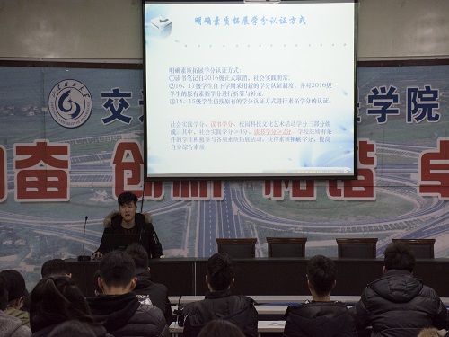 为了让同学们清楚了解老员工素质拓展学分的认证细则,公司于1月6日晚在12教学楼201会议室组织素质拓展学分认证培训会议。此次会议由公司员工会素质拓展部组织,素质拓展部部长赵荣魁、社会实践部部长刘建磊主讲,公司16、17级班长、团支书参加。