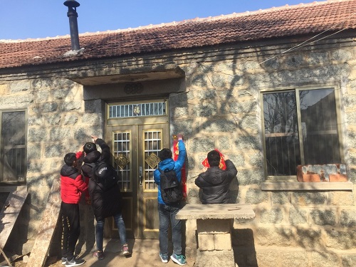 经过长途跋涉,实践团全体成员来到梁山县韩岗镇李坊村的孤寡老人李桂珍家中。实践团为老人准备了生活用品、营养品和春联、年历等年货,得知实践团是来献爱心的,老人十分激动。活动中实践团成员帮助李桂珍老人打扫卫生,帮助她换上新床单、被套等床上用品,给老人家中贴上春联、挂上年历并送上新年祝福。之后,实践团成员和老人一起聊天谈心,询问老人的生活情况,关心老人的身体状况。实践团的到来给寂静的农家小院带来了欢乐,让老人倍感温暖,内心得到了安慰,脸上也浮现了久违的笑容。