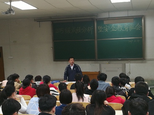 3月14日晚,公司于5号教学楼105教室、203教室、205教室分三场召开2015级成绩分析暨安全教育主题班会。会议由2015级辅导员高萌主持,2015级全体员工参加会议。