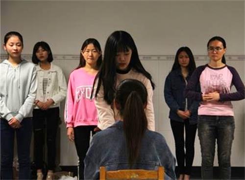 接着她从站姿、走姿、节拍感、坐姿、礼仪手位五个方面入手,为参训人员一一纠错。为了达到更好的培训效果,卞小如通过现场互动及现场示范的形式调动气氛,增强了参训人员的参与性与积极性,并加深参训人员对礼仪知识的理解,使他们在良好的学习氛围中掌握许多实用性极强的社交礼仪知识。随后,在讲到走姿时,卞小如利用托盘、A4纸、证书等道具辅助教学,让大家依次演示正确的走姿,归纳总结走路时的小技巧。在培训过程中她反复强调节拍感的重要性,要做到心中有音乐节拍,脚下步伐从容有序。卞小如虽然以老员工艺术团礼仪部的标准严格要求大家,但松弛有度,给予大家一定的休息时间来缓解疲劳,使此次培训达到了预期的效果。