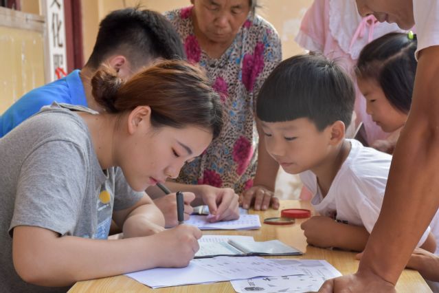 实践团队分为两个小组,分别前往村中进行宣讲和在村委会负责登记前来报名员工。负责招生的队员前往村委会布置现场等候前来报名的员工,同时,小王庄村支部书记董清泰在村里播报了招生消息以便于家长们都收到招生通知并及时前往报名地点。报名过程中,员工在家长的陪同下纷纷前来报名。队员按照流程对家长及员工的姓名、联系方式等基本信息进行登记,家长朋友也向队员们咨询了支教的众多问题,包括授课时长、教学科目、具体教学细节等,队员都一一为其答疑解惑,确保每位报名人员对支教活动都有一定的了解,做到心中有数。家长们热情高涨并与队员亲切攀谈,报名现场人员络绎不绝。在登记的同时,家长也在支教团队拟定的安全协议上纷纷签字,这主要是为确保每一位前来上课员工的人身安全。部分家长在接受采访时说到,希望自家孩子可以在这期间学到更多的知识技能,同时希望支教团队教授员工更多知识,他们对支教团队也给予了期望与肯定。
