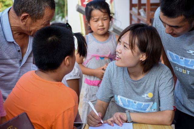 与此同时,另一组成员在村中向村民宣讲支教,采访村民对支教活动的种种看法。报名结束后,队员整理完毕员工信息对其进行分班并分完成教师分配任务。下午,团队成员再次清理了公司卫生,为明天的开学典礼做了充分准备。