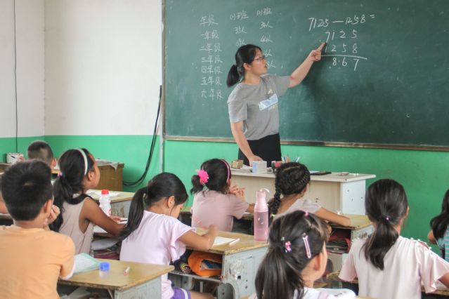 队员们大多是第一次开展教学工作,尽管经过了一晚的备课,在讲台上仍难免有些紧张。但孩子们的朴实与热情很快感染了队员们,短暂的拘谨过后,教学工作渐渐步入正轨。教学过程中,一名同学突发不适,发生了过敏现象,任课队员马上将她带到办公室,询问病情并通知了其家长。