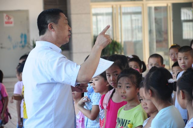 参加活动的员工到达公司后,实践团全体成员与员工于操场集合,短暂等待后,启动仪式正式开始。活动分为两部分,活动伊始,明德小学董事长王建秀发表讲话,他先讲了暑假活动中的纪律和安全,明确了活动中的各种规定,确保支教活动能够顺利进行。随后他介绍了本次活动的课程安排,推荐员工选择多门课程学习。此次实行选课制度,课程包括英语课、书法课、美术课、音乐舞蹈课等,由员工自主选择感兴趣的课程。接着,各科老师对所负责课程进行简单介绍,并引导员工选课,员工们情绪高涨、态度积极。