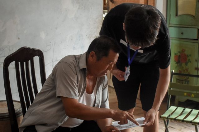 推开曹言召的家门,如叮咚泉水般的琴声便迎面入耳,悠扬且婉转。梯形的琴身配以富有弹性的琴竹击弦,舞动如触角,像蝴蝶一般在曹先生手中翩翩飞舞。清幽抒情的旋律,几多向往,几多迷惘,几多惆怅,都揉碎其中,让人痴迷。奏罢,曹言召热情欢迎来访的团队成员。他向成员们介绍了自己手中琴的近百年历史,并讲述了自己从十几岁开始接触扬琴到如今接手“曹家班”的经历。队员不禁感叹“但识琴中趣,何劳弦上声”,倘若没有对扬琴无比的热爱与坚持,“曹家班”也不会一直传承下去。