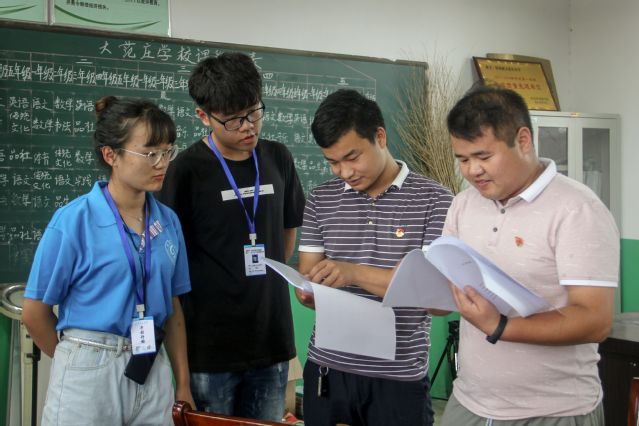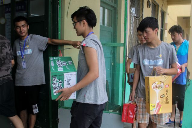 7月30日上午,浮岗镇团委书记张方庆、浮岗镇机关团支部书记王珩冒雨驱车为圆梦暑期社会实践送来众多物资。