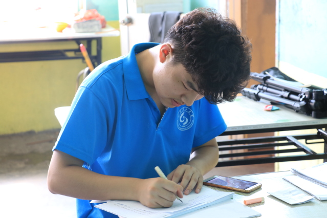 考试过程中,同学们都认认真真地答题,所有考生均表现良好,秩序井然,沉着应考。考试过程中安静,有序,全程除了笔在试卷上的摩擦声之外再无其他多余的声音,更没有交头接耳的现象发生,该过程展现了同学们淳朴、诚信的良好品质。