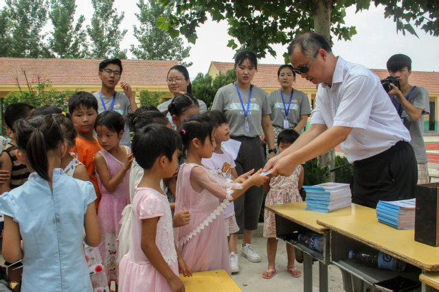 支教工作开展前,实践团队曾举行募捐活动。结业仪式结束后,由王建兴、张凯、崔建强代表实践团队将募捐得来的纸笔与书籍作为奖品分发给同学们,意料之外的奖品使同学们雀跃不已。