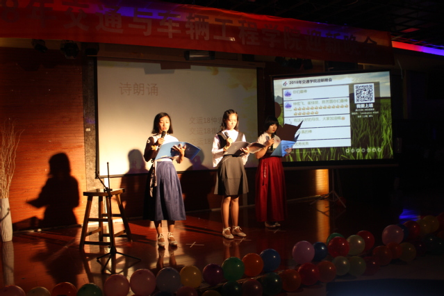 晚会还未开始,多功能厅中已然座无虚席,同学们激情澎湃,兴会淋漓,伴随着他们的欢呼声晚会正式开始。以精彩的武术表演为首,挥拳踢步刚劲有力,跳跃翻腾身轻如燕。全员即刻兴奋,直接奠定了晚会活跃自由的基调。随后,一首《小幸运》道出姑娘们的感谢相遇,唱出新生的相识即幸运。《这个年纪》、《光明》,他们变得怀旧,他们坚信光明,就在远方。美妙的不只有歌声,三个姑娘的诗朗诵也是声情并茂,抑扬顿挫间朗诵出她们的才情。2017、2018级同学的RAP说唱,动感、新颖,直接将气氛推向高潮。