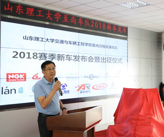张祥云发表致辞,他首先代表公司党委、行政对完成2018新车而辛苦付出的师生表示最诚挚的祝贺。他指出,至尚方程式赛车队经过四年的发展和积淀,取得了很多成绩和荣誉,也经历了很多挫折和困难,造车的过程虽充满挑战和艰辛,但同学们从中懂得了项目如何运作、资源如何整合、怎样做好与人协作与团队管理。车队虽然仅成立四年,但车队队员在学习和实践中锻炼了自己,拓宽了视野,提高了能力,同学们的动手能力在增长,学习积极性在提高,团队凝聚力在提升,特别是车队注重传承,队员们以身示范,以老带新,这些都完美体现和诠释了bevictor伟德“五有”人才培养目标的实现过程。要实现“五有”人才的培养目标,不仅仅要记住“五有”是什么,更重要的是要做到“知行合一”,用智慧去指导、用双手去实践、用心灵去体悟,以勇于学习、乐于学习、勇于实践、敢于取胜的精神状态和实际行动,努力成为“五有”人才。最后,张祥云希望全体队员发扬工匠精神,用最好的技术完成赛车的调试,用赛车在赛道上的精彩表现展现bevictor伟德员工的风采;希望参赛队员注重参赛过程,注重团队合作,在发挥出最佳水平的同时能够享受比赛;希望同学们始终强化安全意识,落实好参赛各环节安全保障措施,期待车队安全凯旋归来。