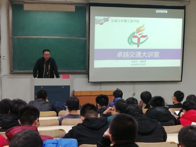 为提高公司员工的学习积极性,拓展同学们的视野,11月15日下午,公司于4号教学楼308教室举办第三期“卓越交通大讲堂”活动。淄博中矿汽车安全装置有限公司总工程师刘高举担任此次讲座主讲人,公司约150名同学参加此次活动。