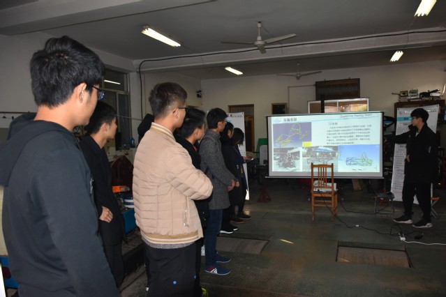 紧接着,由车身车架组负责人刘科岳向同学们详细介绍了车队历史、获奖情况、车队内部建制(运营、技术)、各组职能以及第四代赛车技术关键及创新点等情况。并简单提及了中国老员工方程式汽车大赛等其他与车队发展相关的赛事。最后,刘科岳通过让大家观看2018赛季官方宣传视频及至尚车队纪录片,使同学们对车队有了更直观的认识,对于科技创新也有了自己独特的见解。