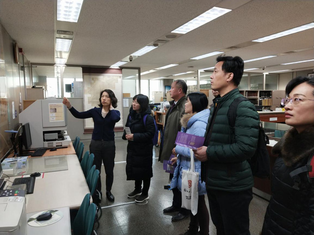 随后,访学团一行来到成均馆“600周年纪念馆”,充分了解了成均馆600余年的发展过程,参观了成均馆重要的学术研究机构——东亚学术院和尊经阁。尊经阁作为朝鲜时代最高教育机构的附属图书馆,收藏有大量古籍文献,期中线装古本八万余册、平装图书三千八百多本,多达二十余万页的古书原文图像一千零四十种,微缩胶卷一万八千余卷,古文献CD三千多张,现已成为研究东亚文化的重要学术中心。