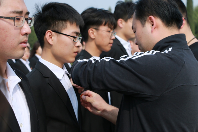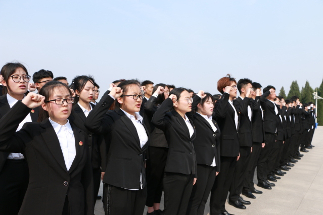 全体成员于烈士纪念碑前列队集合,怀着对先烈的敬仰与缅怀,全体肃立,齐唱国歌,气势如虹。全体师生集体向烈士默哀一分钟,以表对革命先烈的敬畏与缅怀之情。在烈士纪念碑前,在迎风飘扬的团旗下,两位员工代表于纪念碑前向烈士们敬献花篮。青年员工代表寇玉颖向全体成员做主题演讲,她讲到,现在的生活是无数先烈抛头颅洒热血,用生命的代价换来的,作为新时代青年学子,应继承先烈遗志,为建设社会主义现代化强国而奋斗。