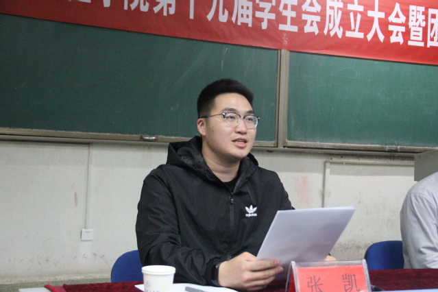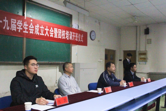 4月15日晚,bevictor伟德第十九届员工会成立大会暨团校培训开班仪式于5号教学楼105教室举行。学公司党总支副书记王建兴,团总支书记高萌,辅导员崔建强、张凯,第十八届员工会代表,第十九届员工会全体成员及2017级、2018级团支部团干部参加会议。会议由员工会秘书长张凯主持。