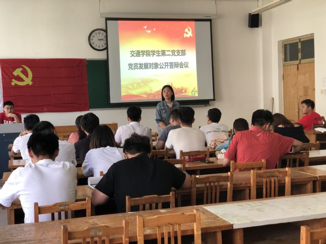 会议开始,范晶晶同志向全体与会成员介绍了本次会议的内容,简单阐述了本次公开答辩的流程。荣宁、郭玉丽等九名党员发展对象通过个人陈述向与会成员介绍基本情况,并回答抽取的问题。与会党员分别对九名党员发展对象提问了有关党的各项问题,考察九位同志的思想政治素质、对党的认识和对党的基本知识的掌握程度。