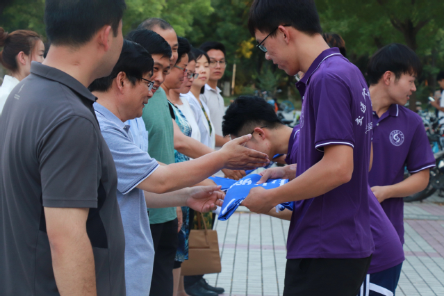 最后,与会领导为实践团队授旗,此次仪式以热烈的掌声而告终。会后,与会领导与实践团队代表在12号教学楼前合影留念。