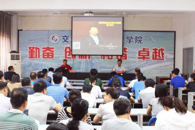 为贯彻落实公司《关于在全校教职工中深入开展“四个自信”教育实践活动的实施方案》的要求,引导广大教职工加强学习、提高认识,7月13下午,公司在12号教学楼201会议室举办题为《坚持用社会主义核心价值观凝心聚力》的报告会,公司全体教职工参加报告会。报告会由党总支书记褚兆勇主持。