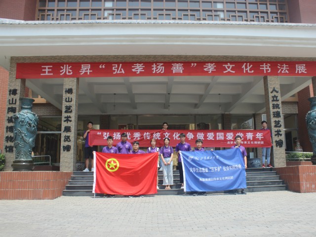 博山琉璃历史悠久,有盛唐开元时代的“不闻淄州出琉璃乎”之问;也有“中华陶琉文化城”的称号。琉璃之于博山,正如瓷器之于中国,博山政府对琉璃文化的保护与支持力度很大,人立琉璃艺术馆则是体现,团队了解到人立艺术馆将立足淄博、放眼山东,营造本土文化生活圈,以“当代美学经济”思维,将人立琉璃艺术馆努力打造成为淄博地区有影响的区域文化名片,以带动区域文化发展。最后,我实践团在博山陶瓷琉璃艺术中心门口合照留念,结束调研。