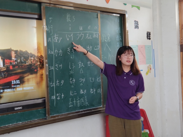 为了使支教内容更加丰富多彩,满足团队对于支教拓宽员工视野、看见更大的世界的初衷,7月18日团队成员根据所学专业,开展了日语启蒙特色课程。