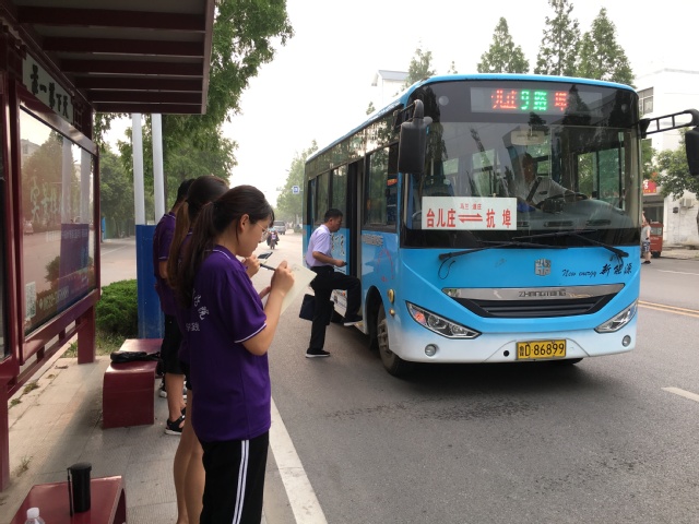 随后团队进行实地考察,采集公交车运行数据。在前往调研前,通过分析台儿庄古城各个时间、各个地点的站牌的车流量、人流量等其他方面因素。选取了早高峰6:50-7:50、午高峰11:00-12:00、晚高峰5 : 00-6:00三个时间段于台儿庄区各个公交车站进行观测。