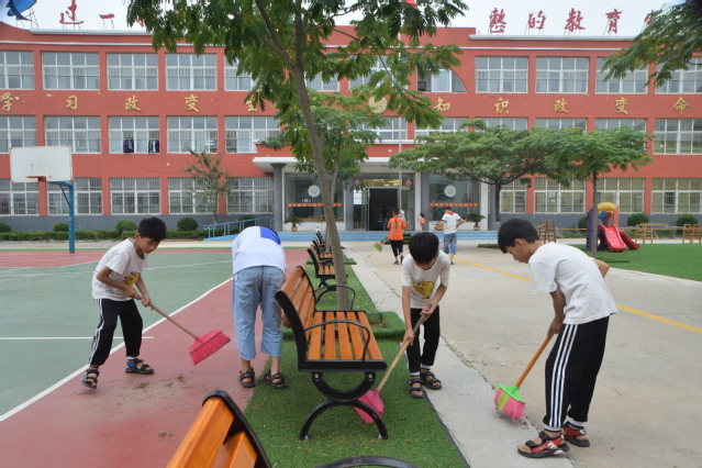 7月18日上午,为迎接省教育局领导来到祥飞海尔希望小学开展检查工作,“筑梦山亭,青春有我”实践团组织全校师生进行了校内环境卫生大扫除。
