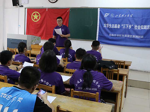 随后,孟子皓讲到,此次实践调研的主题是《关于山东省临沂市红色旅资源开发现状和发展趋势的调研》,团队将会到临沂市各个较有名气的红色旅游区,进行实地调研并对其现状进行分析。同时,孟子皓为与会人员简单介绍此次社会实践的相关内容以及任务安排,并向与会人员分发有关此次社会实践内容的相关资料。此外,他着重讲解了实践中的重要环节和实践方法,前期将会组织团队成员进行一系列的能力培训,后期会进行实地调研,通过采访游客、当地的居民、景区负责人及政府人员,全面了解红色旅游资源发展情况。他还结合成员的个人能力对每个人进行任务安排。
