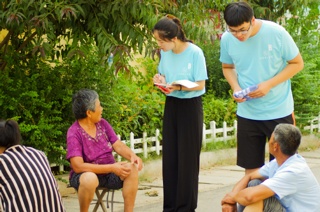 与此同时,另一组成员在村中向村民宣传支教,与村民交谈及询问当地的生源情况,并向村民介绍我们此次支教招生活动的目的,希望能够提高员工们的学习成绩,还想要给孩子们带来快乐,帮助他们看到外面的世界,端正好学习的态度、人生的态度,培养学习的兴趣和爱好,形成积极向上的思想观念,树立远大的理想志向。此次招生活动共招收了三十名一到五年级的员工,并按照年级对他们进行分班和安排课程。