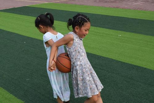 休息时间过后,下一个活动开始。小朋友们两两组队,背对背将球放置中间,在不能用手的情况下,将球运到操场另一面。“预备......开始”比赛开始,小朋友们都奋力向前冲,很快便有小朋友因为过于急躁而失去自己的球,但有些队伍掌握了自己的节奏,披荆斩棘,很快到达终点。