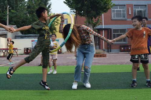 之后,志愿者们也按捺不住,参与到游戏中,和小朋友们打成一片。快乐蔓延在明德小学的每一处。