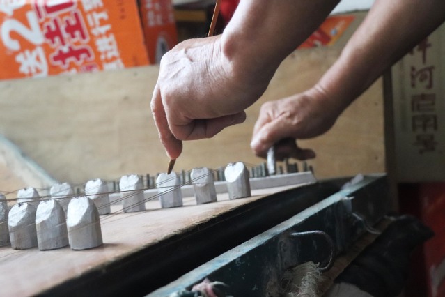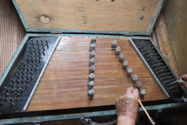曹言召热情招待了团队成员,并与实践队员就民间艺术文化一事进行详细交流。首先,曹言召向成员们介绍了自己手中扬琴的近百年历史,并讲述了自己从小开始接触扬琴到现在接手“曹家班”的经历,他表示,扬琴是根,过了四代人的手,作为“曹家班”第五代传人,他不能将这门技艺丢了。团队成员们感慨正是曹言召对扬琴的热爱与坚持,“曹家班”才会一直传承下去。其次,曹言召为队员们演奏了扬琴文化,琴声如叮咚泉水般,悠扬且婉转,清幽抒情的旋律,让人痴迷。扬琴不只有抒情缠绵的表达,也有轻快悦目的琴音,一曲过后,在场人员仍沉醉其中,意犹未尽。紧接着,曹言召给队员们讲到,多年来,班子里的人走走留留,坚持到现在大家对扬琴的热情与认识也发生了变化,现在科技越来越发达,时代也在不断前进,这些艺术也慢慢不受重视,为响应政府号召,支持乡村文化建设,班子还经常义演。在延续经典和创造新曲中,扬琴一直在前进,最后,曹言召表示,如今传统艺术的传承与保护已经提上国家层面,自己对未来很有信心,也将不断传承与发扬扬琴文化。