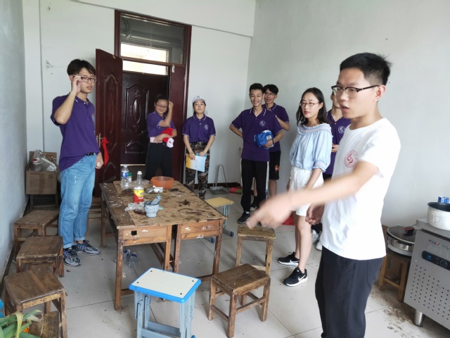 员工们离校后,老师又在我们的陪同下一起去看我们的宿舍环境。了解到,男生们在三伏天里六个人挤在两张乒乓球桌拼成的“床”上,女生们住在没有空调、蚊虫肆虐的小屋中,老师们很是心疼,他们帮我们出谋划策——怎么解决洗澡,怎么与蚊虫斗争。老师的言语中既有心疼又充满了激励。经过这次磨砺,我们不仅教授给孩子们知识,播种了希望;更能丰富自己的人生经历,让自己成长。