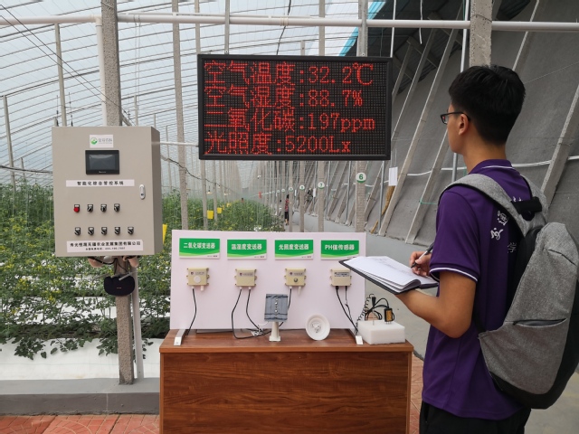 作物棚内安置有鼓风机、补光灯、二氧化碳产生器等先进生产设备,并且有监管设备可以对环境的各项指标进行实时的调控。