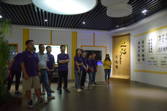 团队成员在抵达月亮湾后,受到了月亮湾管委会主任杜相旭,月亮湾开发商潘硕,常伟以及当地工作人员的热情欢迎。首先,杜相旭给我们介绍了月亮湾目前的状况。月亮湾是国家AAAA级旅游景区,2009年被批准建设成为省级湿地公园,月亮湾是以城河为主干,由响水河等肢体河流组成, 建设长度12公里,总面积260公顷。在工作人员的带领下我们参观了自然生态博物馆,博物馆位于月亮湾湿地生态展示区的核心区域,展馆建筑面积1000余平方米,是一处集收藏、展示、教育、旅游、娱乐于一体的综合性博物馆,是枣庄市重要的文化旅游展示、生态环保教育基地。