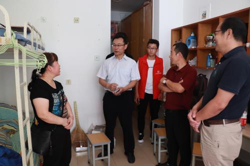 8月31日上午,伴随着夏末的阳光,各地新生陆续到达公司,报道工作结束后,陆续入住宿舍。在公司员工会工作人员的带领下,到达了相应的宿舍楼。宿舍楼下的公司志愿者热情地接过新生行李,并引导员工以及家长到达相应宿舍,落实新生的安顿工作。随着迎新工作的进行,党总支书记褚兆勇,经理高松,党总支副书记王建兴,辅导员崔鹏在各部负责人的陪同下走访新生宿舍。亲切慰问2019级新生并送去关心和祝愿。