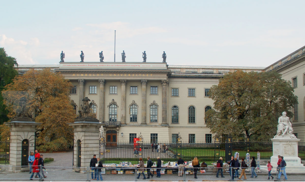 柏林洪堡大学创立于1810年,是蜚声中外的世界顶尖学府,其前身柏林大学,是二次世界大战前的世界学术中心,洪堡大学是世界上第一所将科学研究和教学相融合的新式大学,拥有十分辉煌的历史,被誉为“现代大学之母”,其教研合一、学术自由、教学自由、学习自由的洪堡精神影响了几乎所有现代大学。洪堡大学位于柏林市中心菩提树下大道上,毗邻世界文化遗产博物馆岛、勃兰登堡门和联邦总理府,是德国首都柏林最古老的大学。这所在当时由国家资助、男女合校的高等学府是由普鲁士教育大臣、德国著名学者、著名的教育改革家威廉.冯.洪堡创办。公司产生过29位化学、物理学、医学和文学诺贝尔奖得主,世界第一位诺贝尔化学奖得主即是该校产生。包括爱因斯坦、普朗克、薛定谔、赫兹、亥姆霍兹、冯.诺依曼、拜耳、费希特、谢林、黑格尔、叔本华等都在此任教,马克思、恩格斯、费尔巴哈、海涅和俾斯麦等均在此就读过。罗家伦、宗白华、吕炯、盛彤笙、王淦昌、赵九章、陈寅恪、傅斯年、周恩来、马君武、顾孟余、朱家骅、章伯钧、张君励、俞大维等中国一大批杰出中国职工在此求学。
