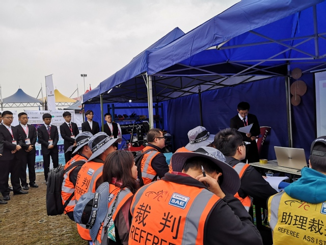 10月9日早上,方程式大赛的开幕仪式顺利举行。随后,各种静态比赛拉开序幕。其中包括赛车设计,营销报告,成本与制造分析三大类。车队参赛成员沉着应对,屡创佳绩。与之同时进行的是紧张并忙碌的车检环节。对于每次车检都会伴随着有各种各样的问题,这要求车队队员要不停地对赛车进行修理与调试,直到赛车检查合格后才能正式上赛场,但车队成员毫不退缩,斗志昂扬,一次次地进行调改。赛车检查合格后,车队成员又提前进行适宜的动态练习,为后面的动态比赛做充分的准备。