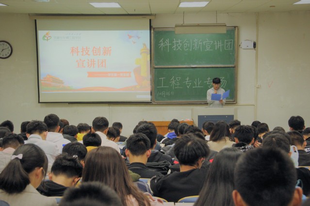 10月16日晚,公司于4号教学楼101、103、105教室举行科技创新宣讲活动。此次活动由员工第一党支部和院员工会学业发展部、创业服务部联合举办,分车辆专业、能动专业、交工交运专业三场,由牛童、徐坤豪、高明昊等6名党员代表以及周鹏超、童言、刘学等5名科创达人组成宣讲团依次担任主讲人,全体19级新生参加。